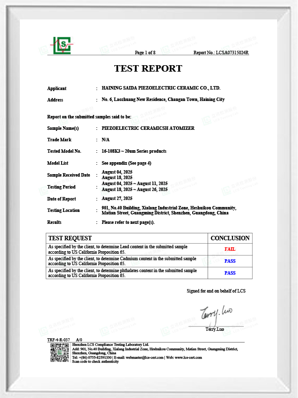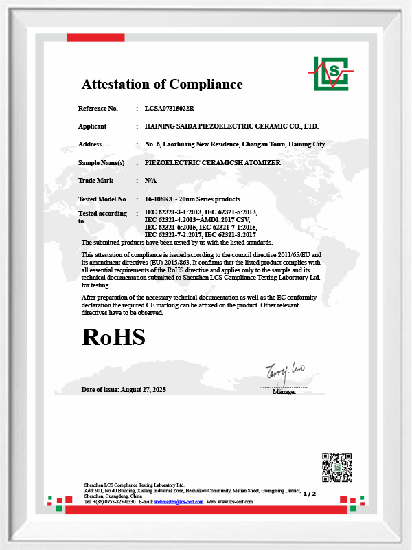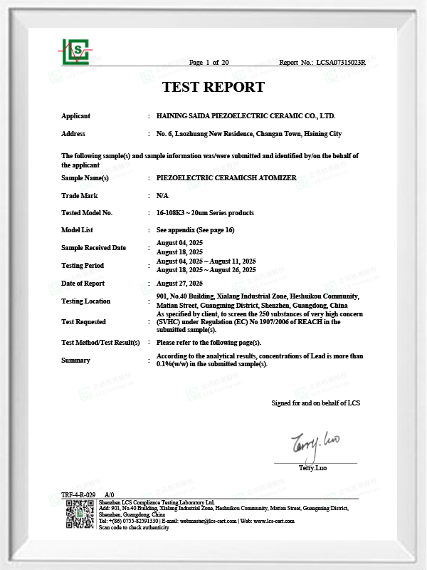 เซรามิกเพียโซอิเล็กทริกไร้สารตะกั่วเป็นที่รู้จักในนามอุตสาหกรรมเพียโซอิเล็กทริก "ไข่มุก" ในอนาคตจะค่อยๆ มาแทนที่เซรามิกเพียโซอิเล็กทริกที่ใช้สารตะกั่วในทุกด้าน ซึ่งมีประสิทธิภาพเพียโซอิเล็กทริกเหมือนกันอยู่แล้ว และแผ่นเพียโซอิเล็กทริกที่ใช้ตะกั่ว มันไม่เป็นพิษโดยสิ้นเชิง ไม่เป็นอันตราย ปลอดภัย และเป็นมิตรกับสิ่งแวดล้อม ไม่มีตะกั่ว พลวง และโลหะหนักอื่นๆ และองค์ประกอบอื่นๆ ที่จำกัด Rohs อุณหภูมิกูรีสูง Tc-328 ° C การสูญเสียไฟฟ้าต่ำมาก TangentLoss ดังนั้นชิปการทำให้เป็นอะตอมทางการแพทย์แบบเพียโซอิเล็กทริกไร้สารตะกั่วจึงมีมูลค่าทางการค้าที่ดีและมีมูลค่าสากล เซรามิกเพียโซอิเล็กทริกไร้สารตะกั่วที่ปลอดสารพิษและเป็นมิตรกับสิ่งแวดล้อมอย่างแท้จริง นอกเหนือจากการไม่ก่อให้เกิดมลพิษ ประสิทธิภาพของเพียโซอิเล็กทริกที่เทียบเท่ากับเซรามิกที่ใช้ตะกั่ว จะกลายเป็นเซรามิกเพียโซอิเล็กทริกที่เป็นมิตรต่อสิ่งแวดล้อมยอดนิยม หลังจากการวิจัยและพัฒนามาหลายปี หลังจากการทดสอบและทดลองอย่างต่อเนื่อง บริษัทก็ประสบความสำเร็จในการผลิตชิปการทำให้เป็นละอองทางการแพทย์แบบไร้สารตะกั่วเพื่อให้ได้ปริมาณการทำให้เป็นละอองในปริมาณเท่ากันกับชิปการทำให้เป็นละอองแบบใช้ตะกั่ว และข้อกำหนดของอนุภาคที่มีเส้นผ่านศูนย์กลางเท่ากัน ชิปเครื่องพ่นยาแบบตาข่ายทางการแพทย์ไร้สารตะกั่ว จะส่องสว่างอย่างแน่นอนและจะใช้งานได้หลากหลายสถานการณ์